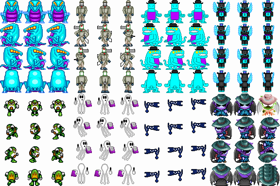 GamesCSDO2 Walking Character Sprites September 3, 2018 cyancrocomire These are the walking animations for the 8 playable party members in my upcoming game Cyan’s Strange Day Out 2 (CSDO2). Toad Man sprites are ripped from Mega Man Soccer, and are not custom made by me. Share this: Share on X (Opens in new window) X Share on Facebook (Opens in new window) Facebook Like Loading... Related